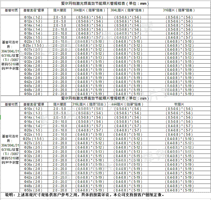 激光焊接工藝可使用的基管壁厚最薄為1.0mm,翅片最薄為0.4mm,大大減少了熱阻。獨(dú)特的纏繞工藝可保證翅片間距最小為2.0mm,且翅片分布均勻、底部平整無褶皺,防止積灰,極大的提高了換熱效率,比同規(guī)格的高頻焊翅片管要節(jié)能30%以上。